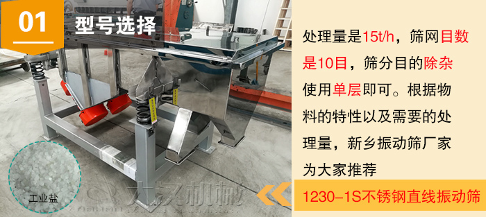 下面小編從型號(hào)選擇、方案設(shè)計(jì)、篩機(jī)材質(zhì)這三個(gè)方面給大家介紹一下篩分工業(yè)鹽用直線振動(dòng)篩好在哪里?希望這個(gè)簡(jiǎn)單的技術(shù)分享便于各位需要工業(yè)鹽篩分用戶(hù)參考: