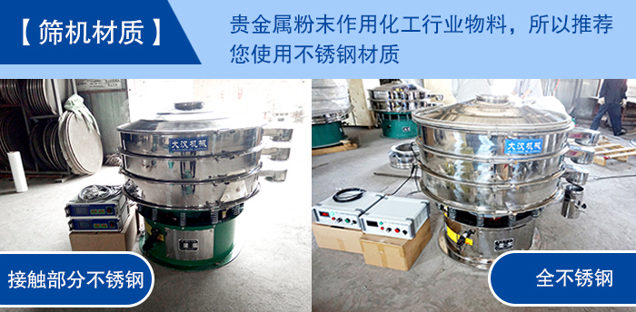 【篩機材質(zhì)】—— 貴金屬粉末作用化工行業(yè)物料,所以推薦您使用不銹鋼材質(zhì),而常用的不銹鋼超聲波振動篩分為兩種結(jié)構(gòu),一種是整機均采用不銹鋼制成,另一種是與物料接觸不分為不銹鋼材質(zhì),底座為碳鋼材質(zhì),至于如何選擇就看您對衛(wèi)生環(huán)境的要求以及成本預(yù)算了。