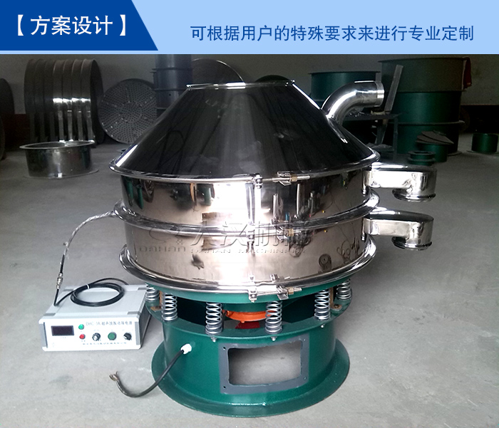 【方案設(shè)計】—— 這是大漢機械在標準型號上延伸的定做方案,可根據(jù)用戶的特殊要求來進行專業(yè)定制(如:框體、底座加高,進料口加料斗,出料口加閘門等)為您打造專屬的貴金屬粉末超聲波振動篩。