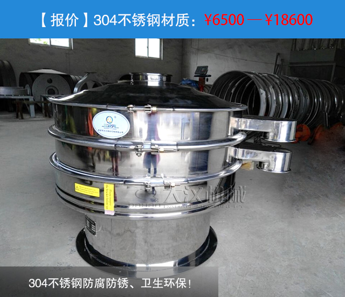 304不銹鋼防腐防銹、衛(wèi)生環(huán)保!——304不銹鋼材質(zhì)的振動篩是采用304不銹鋼材質(zhì)(兩種結(jié)構(gòu)規(guī)格:一、整機均采用不銹鋼制成;二、物料接觸不分為不銹鋼材質(zhì),底座為碳鋼材質(zhì)),它是食品、醫(yī)藥專用材質(zhì),雖然我們要篩分的是化學(xué)物料錫粉,但是對于衛(wèi)生環(huán)境要求較高的企業(yè)這也是不錯的選擇。