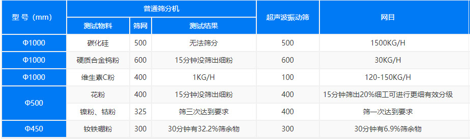 超聲波振動(dòng)篩,是在普通篩網(wǎng)上加裝了高頻率低振幅的超聲波系統(tǒng),將220V、50Hz電能轉(zhuǎn)化成36KHz機(jī)械振動(dòng),篩分過濾精度高,有效解決因團(tuán)聚、靜電、強(qiáng)吸附性卡堵網(wǎng)孔等篩分難題,性能超強(qiáng),可篩分80-600目,遠(yuǎn)超普通旋振篩,應(yīng)用行業(yè)廣泛。