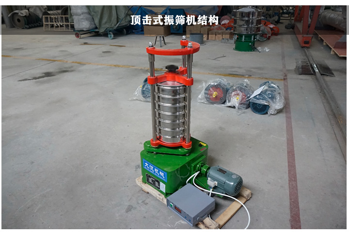 頂擊式振篩機(jī)體型小,結(jié)構(gòu)簡單緊湊。定時器、開關(guān)、振動電機(jī)位于下層,振動電機(jī)運(yùn)作,定時器啟動定時篩分時間,繼而位于底座上方的振動托盤把振動力傳給篩具,篩具的周圍有螺桿,螺桿的上下兩端被圓手柄固定在頂蓋和振動托盤的邊緣處,這樣可以支撐起頂蓋和振動托盤,篩具位于兩者之間,由頂蓋按壓,托派也可以上下移動位置,這樣物料在振動時篩分時振動力會更加明顯,提高篩分效果。