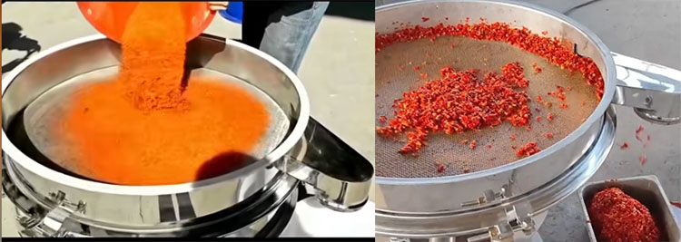 粗過濾/去籽去皮(20目 - 60目):·主要用于辣椒醬制作前的篩分處理,去除辣椒籽、辣椒梗、大片辣椒皮。這是制作細(xì)膩辣椒醬的關(guān)鍵一步,辣椒籽會(huì)影響口感和美觀,分離粗顆粒,得到基礎(chǔ)的辣椒漿,這個(gè)目數(shù)適合帶有一定顆粒感的剁椒醬、粗加工的原醬篩分。