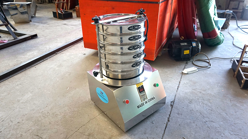 2、把標(biāo)準(zhǔn)試驗篩框按孔徑從小到大,從下到上依次疊放到篩框座上,由凹槽或定位螺絲對標(biāo)準(zhǔn)篩框進(jìn)行定位。